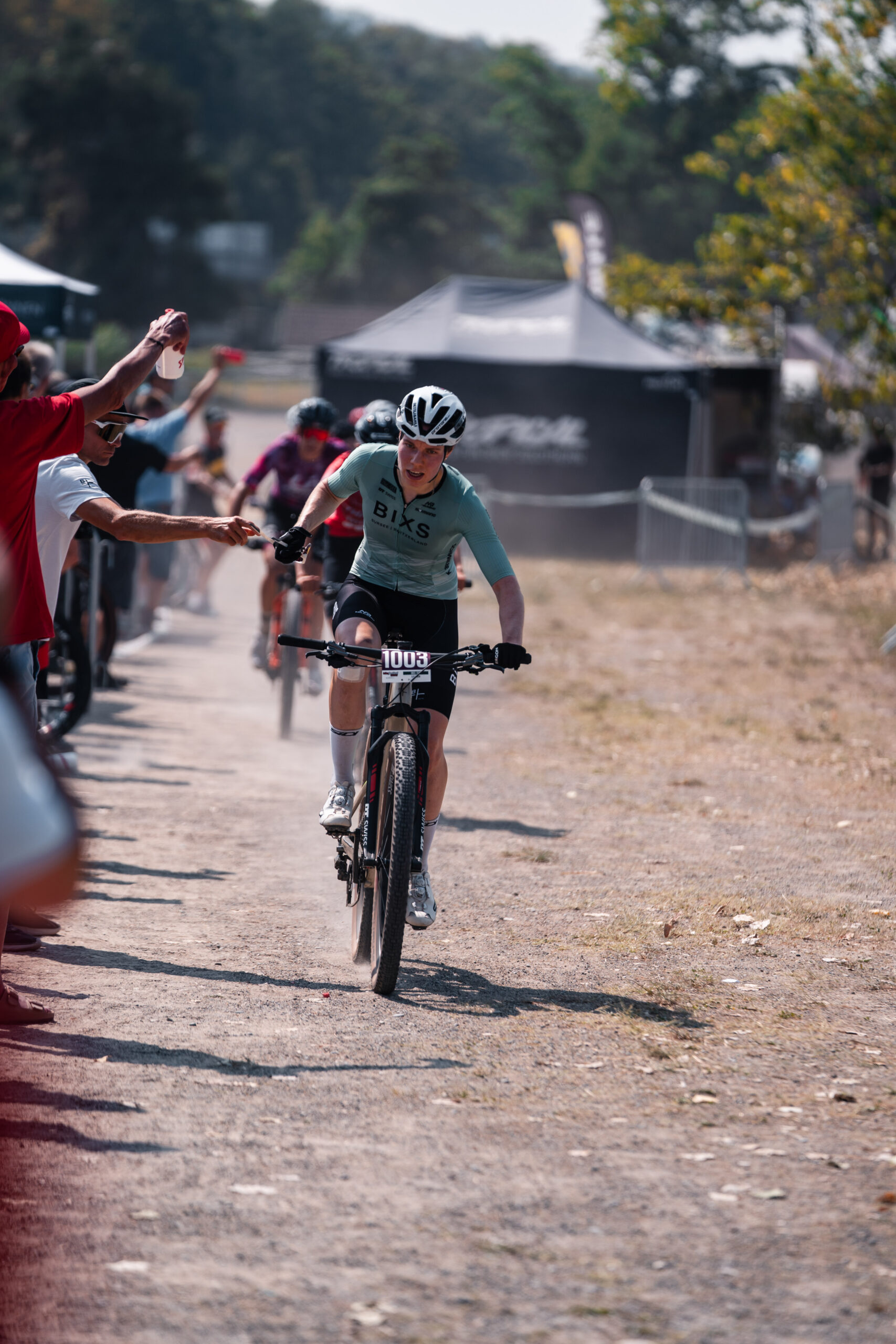 Ein allerletztes Mal geht es über die “Bananenbrücke” und den steilen Anstieg im Wald hoch. Mein Vorsprung von einer Minute und einundvierzig Sekunden auf die erste Verfolgergruppe ist gross genug, dass ich mir ungefährdet den zweiten Rang sichern und die Zieleinfahrt vor heimischem Publikum geniessen kann. Beim letzten Mal klappt es nun doch noch, beim Heimrennen unter die Top 3 zu fahren, vierundzwanzig Sekunden hinter Schweizermeisterin Alessandra Keller.
